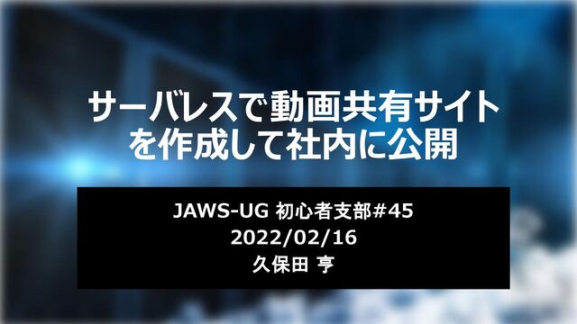 サーバレスで動画共有サイト を作成して社内に公開 JAWS-UG 初心者支部#45 2022/02/16 久保田 亨