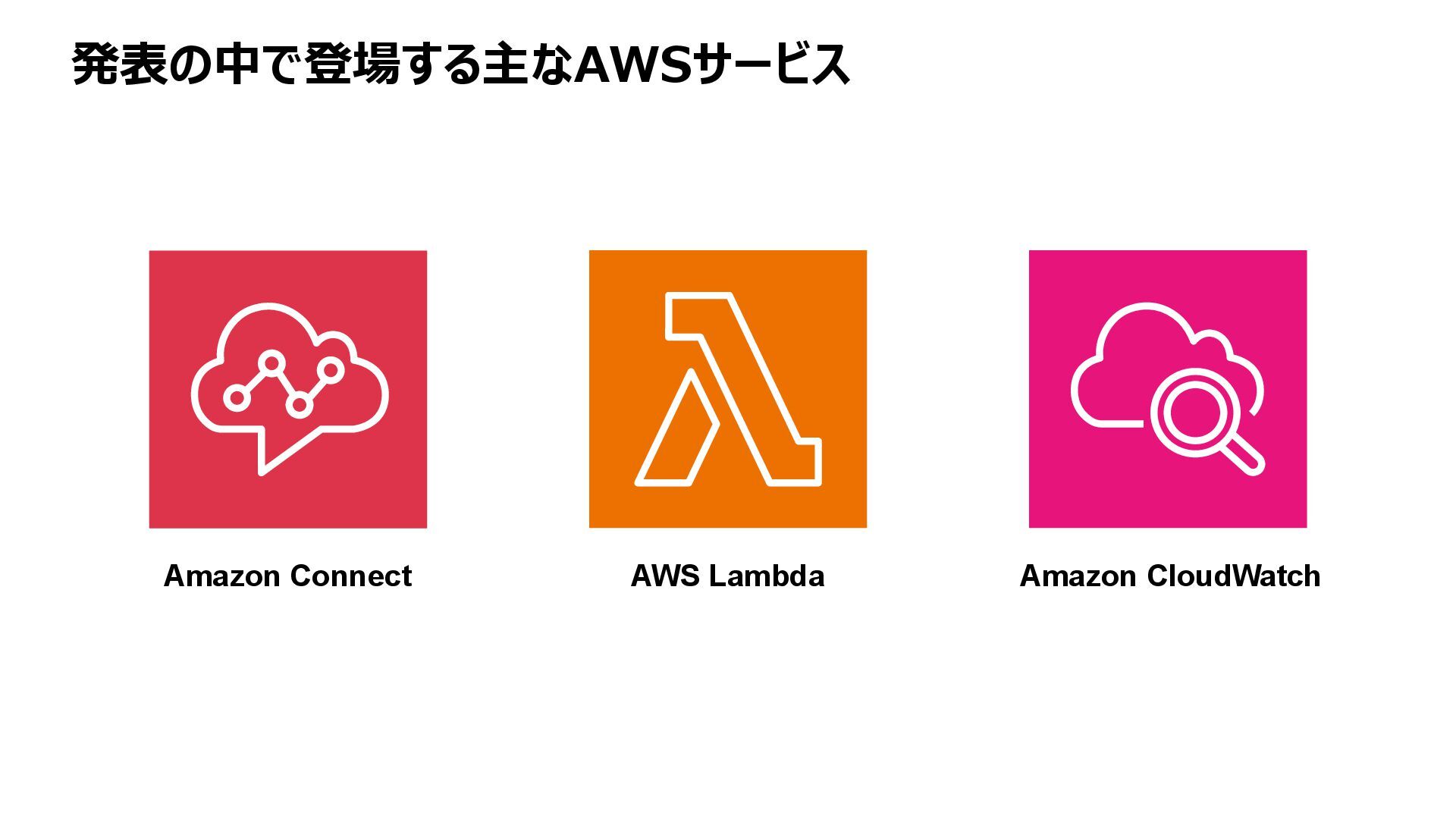 発表の中で登場する主なAWSサービス Amazon Connect AWS Lambda Amazon CloudWatch