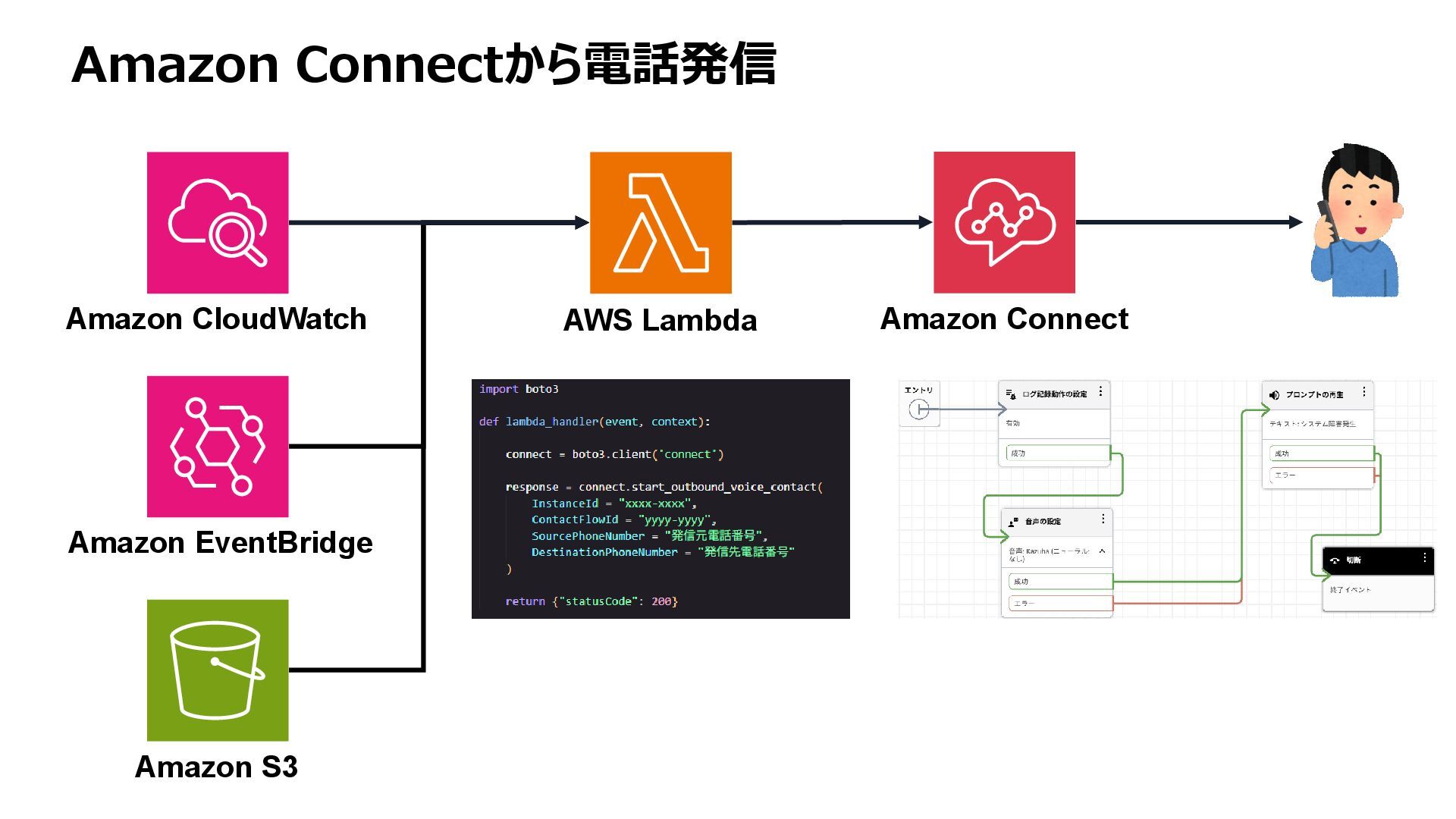 Amazon Connectから電話発信 Amazon Connect AWS Lambda Amazon CloudWatch Amazon S3