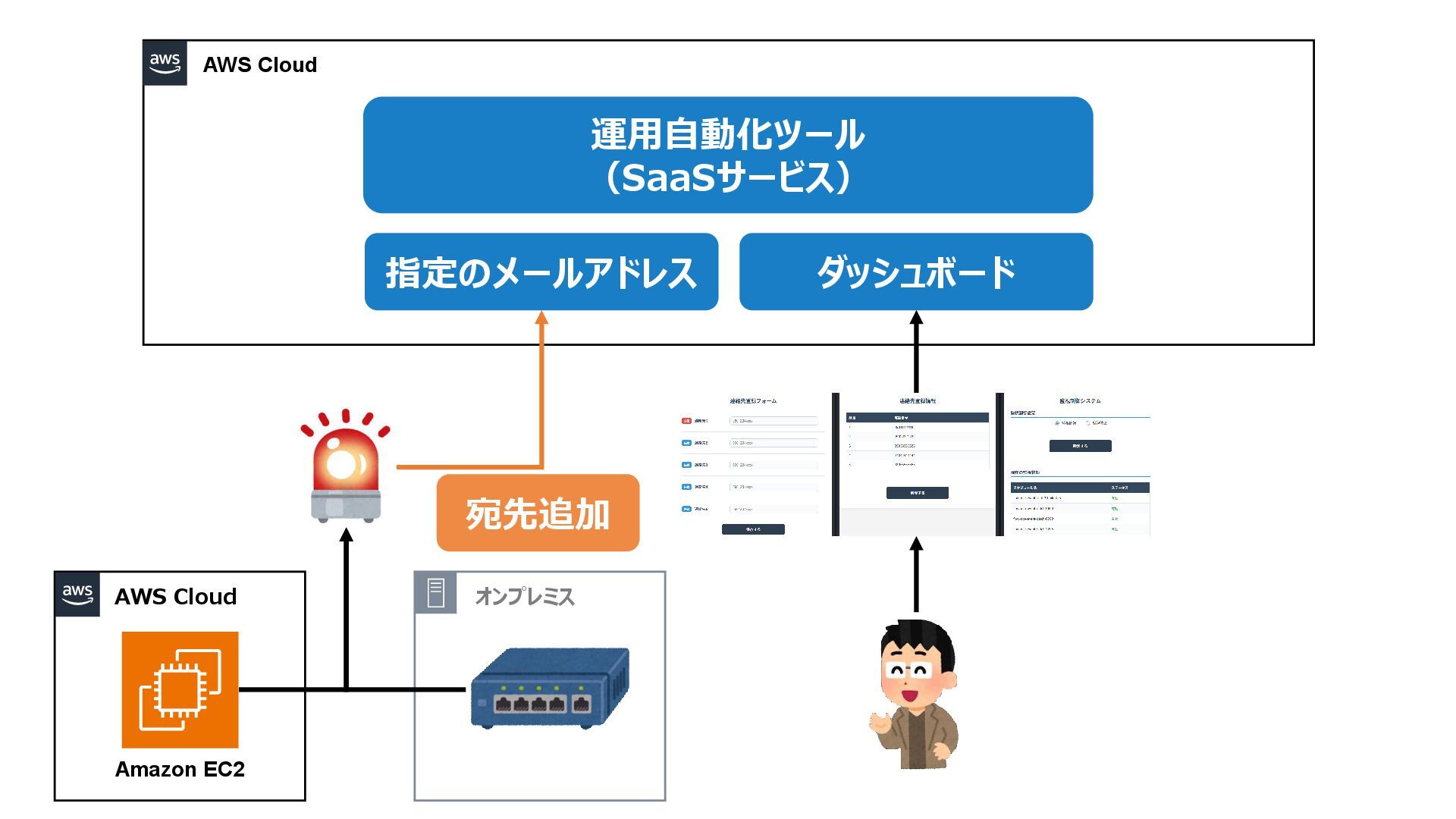 指定のメールアドレス AWS Cloud ダッシュボード 運用自動化ツール (SaaSサービス) AWS Cloud オンプレミス Amazon