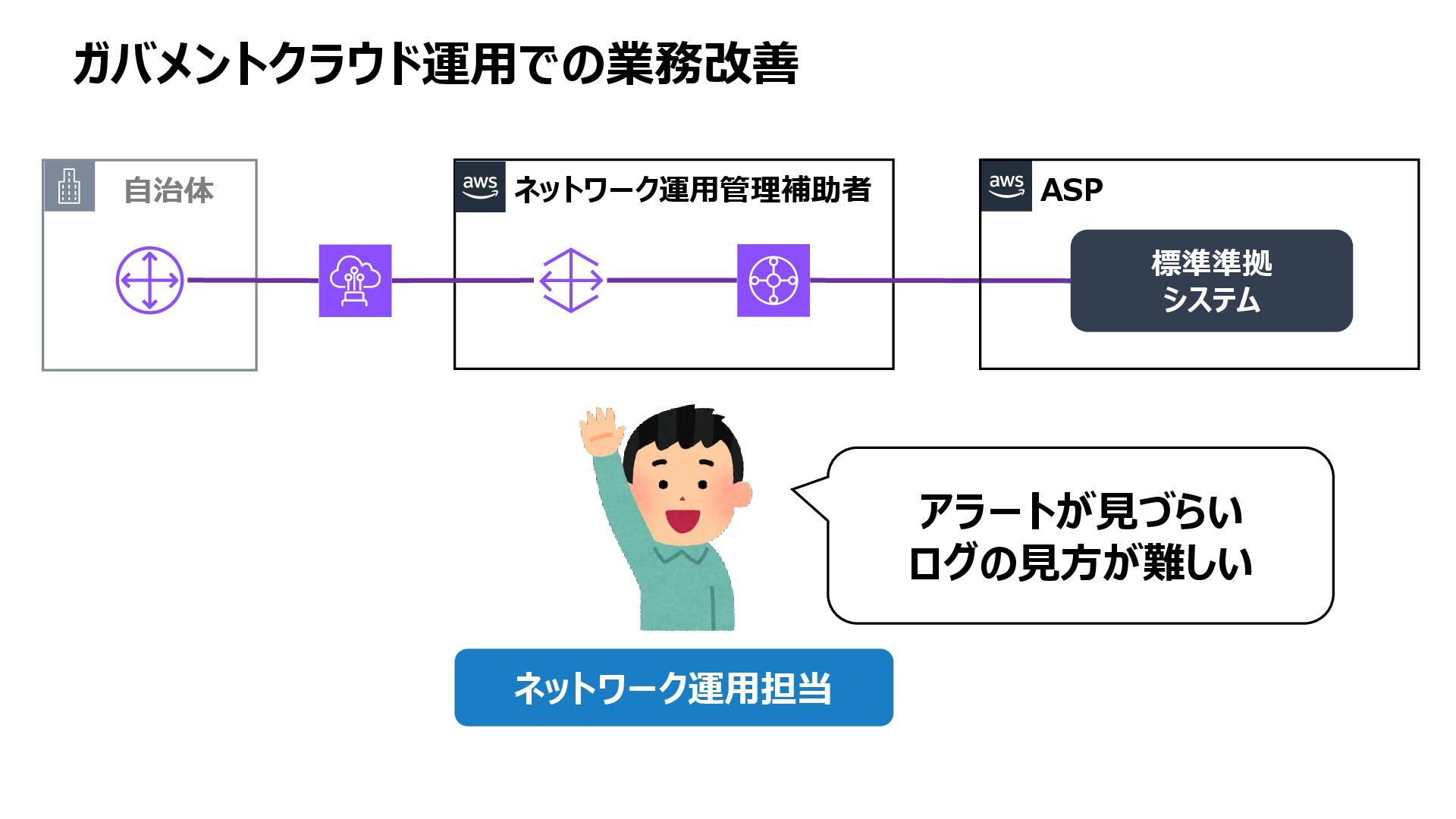 自治体 ガバメントクラウド運用での業務改善 ネットワーク運用管理補助者 標準準拠 システム ネットワーク運用担当 ASP アラートが見づらい ログの見方が難しい