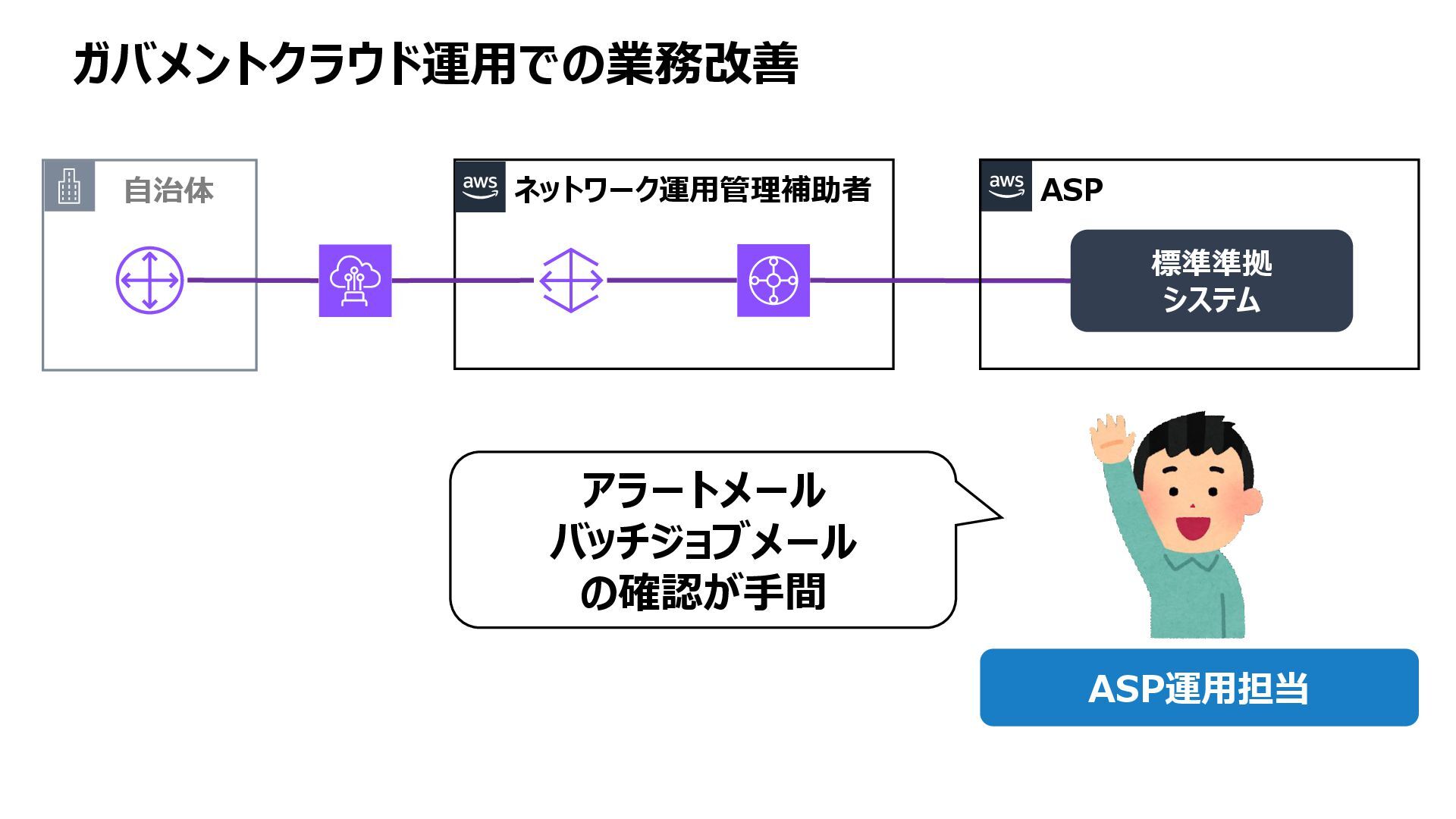 自治体 ガバメントクラウド運用での業務改善 ネットワーク運用管理補助者 標準準拠 システム ASP ASP運用担当 アラートメール バッチジョブメール の確認が手間