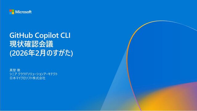 GitHub Copilot CLI 現状確認会議 (2026年2月のすがた) 真壁 徹 シニア クラウドソリューションアーキテクト 日本マイクロソフト株式会社