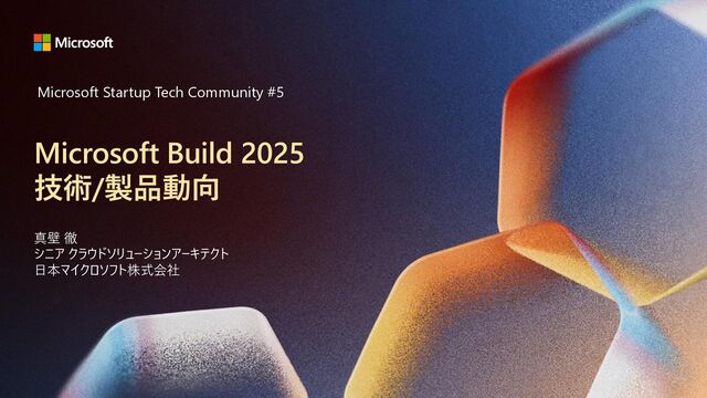 Infrastructure is Powertrain GA Public Preview エージェントをエージェントたらしめる 「データ」 とそれを支える 「インフラ」 BI Data ・ Cosmos DB や Databricks を Foundry に簡単接続 Foundry との接続拡大 ・ Cosmos DB が Fabric 対応 ・ 半構造化データも簡単利用 Cosmos DB in Fabric Public Preview ・ Agent Service スレッドを自前 の Cosmos DB に格納可能 BYO Thread in Agent GA Chat Public Preview ・ Fabric や Power BI のデータを 自然言語で分析・グラフ化 ・ M365 Copilot からも利用可 Chat with your Data Infrastructure ・ パフォーマンス = トークン/(電力+コスト) ・ ファイバー関連 (400Tb/sec) の WAN ・ ラック冗長性 (Dual ToR) Data Center への投資 発表 ・ R&D 向けエージェントサービス ・ グラフベースと HPC 基盤で 仮説生成から分析まで実施 Microsoft Discovery ・ GPU の100倍の エネルギー効率の 可能性 Optical Computing (光計算) 基礎研究