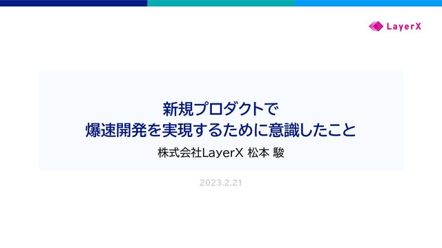 新規プロダクトで 爆速開発を実現するために意識したこと 株式会社LayerX 松本 駿 2023.2.21
