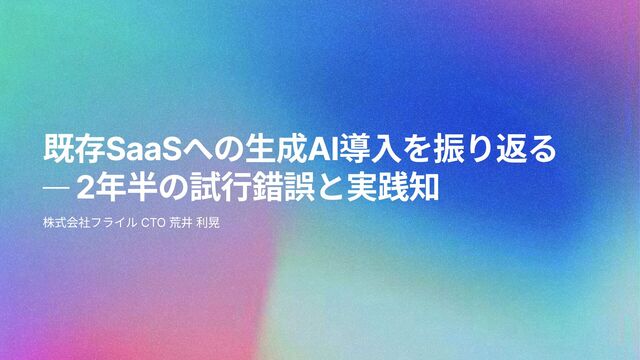 既存SaaSへの生成AI導入を振り返る ─ 2年半の試行錯誤と実践知 株式会社フライル CTO 荒井 利晃