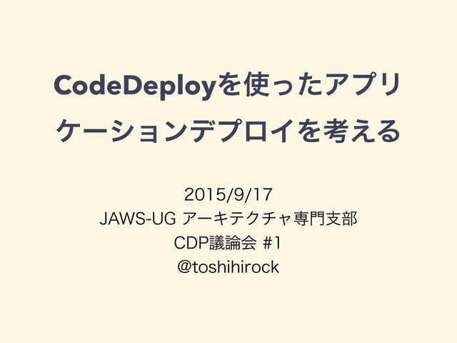 CodeDeployΛͬͨΞϓϦ έʔγϣϯσϓϩΠΛߟ͑Δ +"846(ΞʔΩςΫνϟઐࢧ෦ $%1ٞձ !UPTIJIJSPDL