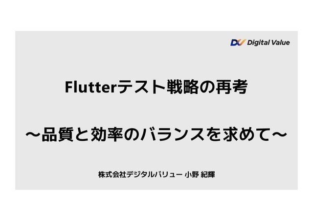 Flutterテスト戦略の再考 お 〜品質と効率のバランスを求めて〜 株式会社デジタルバリュー 小野 紀輝