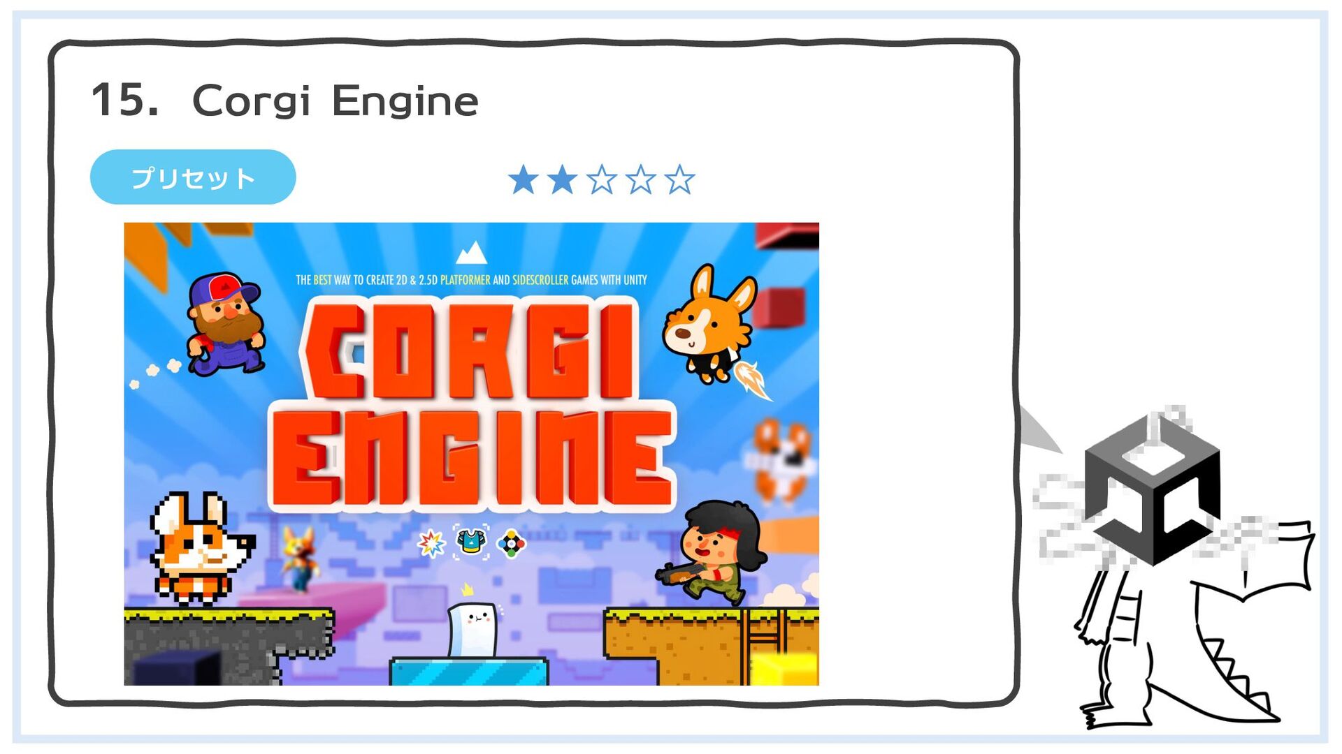 プリセット Corgi Engine 15. ★★☆☆☆