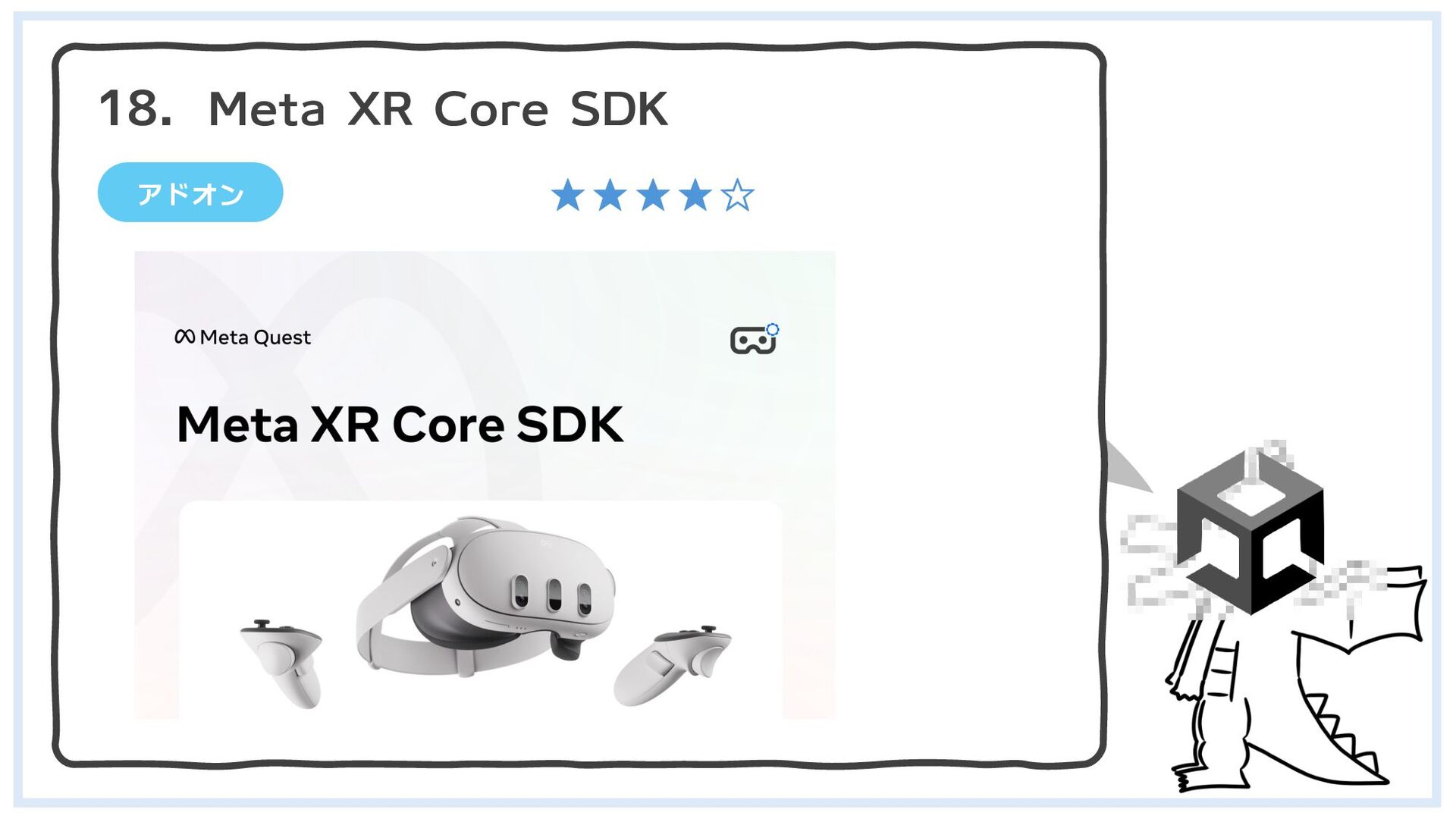 アドオン Meta XR Core SDK 18. ★★★★☆