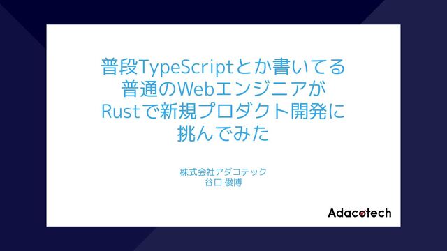 普段TypeScriptとか書いてる 普通のWebエンジニアが Rustで新規プロダクト開発に 挑んでみた 株式会社アダコテック 谷口 俊博