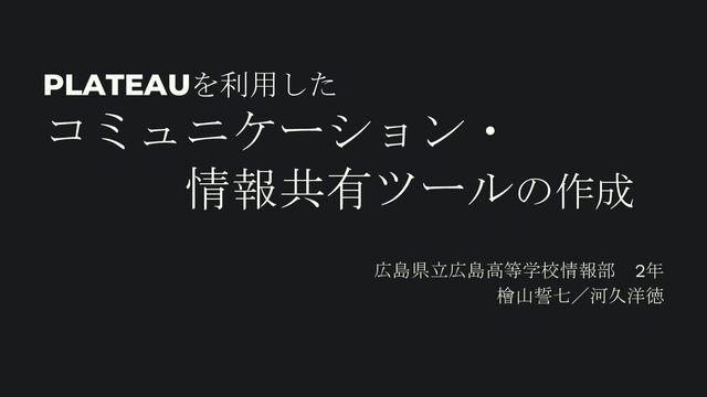 PLATEAUを利用した コミュニケーション・ 情報共有ツールの作成 広島県立広島高等学校情報部 2年 檜山誓七/河久洋徳