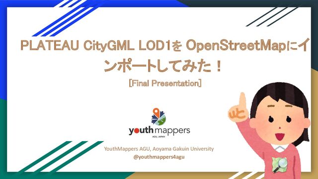 PLATEAU AWARD 2022 ファイナリスト作品No.6 チーム名:YouthMappersAGU 作品名:PLATEAU CityGML LOD1 を OpenStreetMap にインポートしてみた!