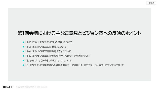 まちづくりDXの役割分担とケイパビリティ強化」について 5 反映のポイント 主なご意見 ⚫ 現状、エリアマネジメントと言ったときに、エリア経営的な話と、エリアマネジメント団 体・組織の活動の話が混在してしまうが、そこはぜひ避けて議論していきたい。(重松委 員) ⚫ いろいろなものをつなぎ合わせて機能させるという役割がエリアマネジメント組織に はあって、それが民主導ということなのではないか。(重松委員) ⚫ 「エリア経営」には公共空間を含むため、公共団体に経営者がいないということは考え にくい。民間が主導してまちづくりをやってくれればいい、という形での関わりではな く、公共団体がよりしっかりと共同経営的に入っていく必要がある。(重松委員) ⚫ 「1-6 まちづくりDXの役割分担とケイパビリ ティ強化」において、まちづくり団体と地方公 共団体の各役割の位置づけを明確化。 ⚫ あわせて「3.まちづくりDX実現のための重点 取組テーマ」の「3-2 エリマネDX」におけるエ リマネ定義の修正。 ⚫ データはいかにいろいろなものをつなぎ合わせて機能を果たすかという、サービス部 分が非常に重要。そのため、まちづくりのデジタル・インフラは使い方を考えてつくる必 要があり、エリアマネジメント組織も含め公・民での使い方を考えた上でデータを設計 するという関わり方が必要。 (重松委員) ⚫ 公共データのオープンデータ化を進めるためにも、どのようにデータが使われたかの フィードバックを得られるような仕組みがあると良い。(清水委員) ⚫ 「1-6 まちづくりDXの役割分担とケイパビリ ティ強化」において、エリア内データの提供等 についての官民の双方向性の重要性について 追記。