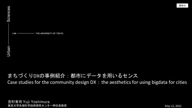 DX:the aesthetics for using bigdata for cities 吉村有司 Yuji Yoshimura 東京大学先端科学技術研究センター特任准教授 May 12, 2022 資料6