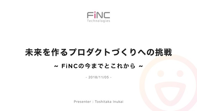 ະདྷΛ࡞ΔϓϩμΫτͮ͘Γͷઓ - 2018/11/05 - Presenter : Toshitaka Inukai ~ FiNCͷࠓ·Ͱͱ͜Ε͔Β