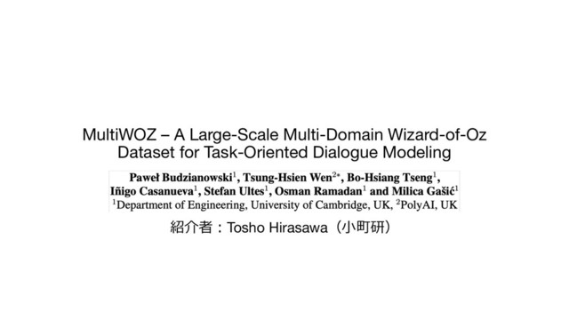 Budzianowski et al. - EMNLP 2018 - MultiWOZ - A...
