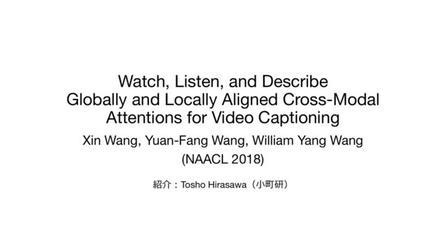 (Video, sampling rate: 3 fps), VGGish (Audio) Evaluation Metrics • BLEU, METEOR, ROUGE-L, CIDEr-D (MS Challenge Metrics ) Model • Encoder dim (low, high): (512, 256), (128, 64) for video, audio • Chunk size: 10, 4 for video, audio • Decoder dim: 256, 1024 for global, local • Embedding dim: 512