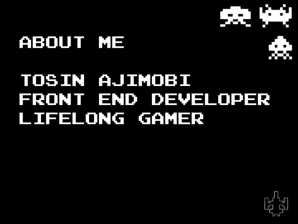 About me Tosin AJimobi Front End Developer Lifelong Gamer