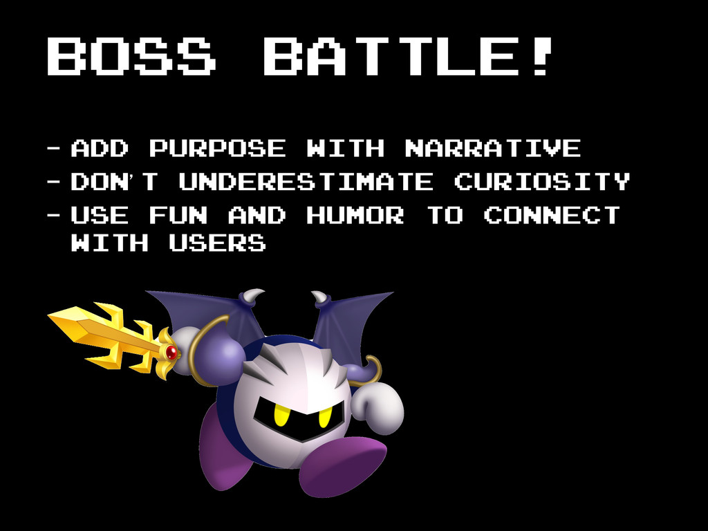 BOSS BATTLE! - Add purpose with Narrative - Don’t underestimate