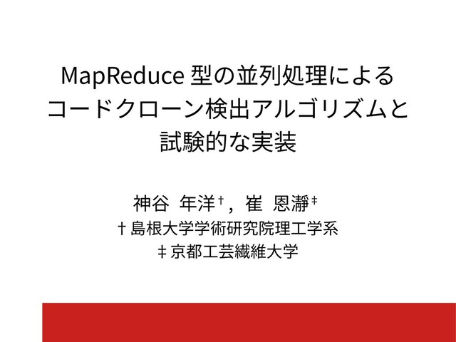 MapReduce 型の並列処理を取り入れた,大規模なコードベースに適用可能なスケーラビリティを持つタイプ 3 コードクローン(重複コード)検出手法を提案する.手法を実現するツールを, 4 億行規模のコードベースに対して適用する実験を行った.実験には 1 台の計算機(ただしメモリ 128GiB)を利用し,数時間程度でコードクローンを検出した.