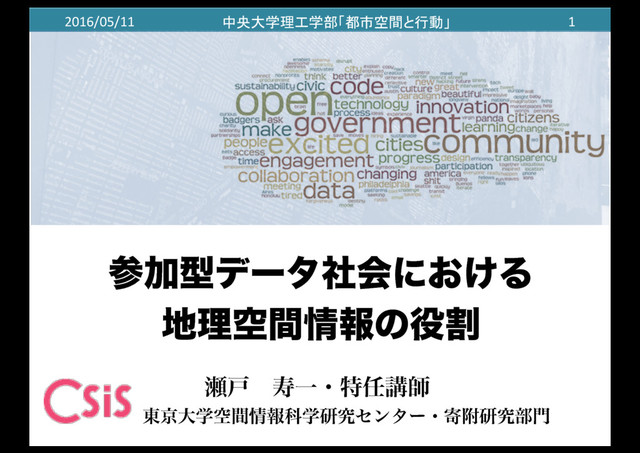 (KB) 合 計 都道府県 21 1,825 (10.0%) 309.5 3,097 (17.0%) 397.8 4,922 政令指定都市 14 836 (4.6%) 36,514.5 4,516 (24.8%) 415.5 5,352 中核市 15 705 (3.9%) 194.6 644 (3.5%) 874.8 1,349 市町村 87 1,576 (8.6%) 8615.1 4,718 (25.9%) 244.3 6,294 区部 26 96 (0.5%) 64.5 232 (1.3%) 4872.5 328 合 計 163 5,038 (27.6%) 9975.5 13,207 (72.4%) 453.9 18,245 (2015年8月末の公開時点から集計) 【位置情報ありの一例】 公共施設の場所、避難場所、AED、コミュニティバス停、観光マップ・ハザードマップ、 都市計画現況図、航空写真データ、(静岡県)森林簿、(室蘭市)地番図 など