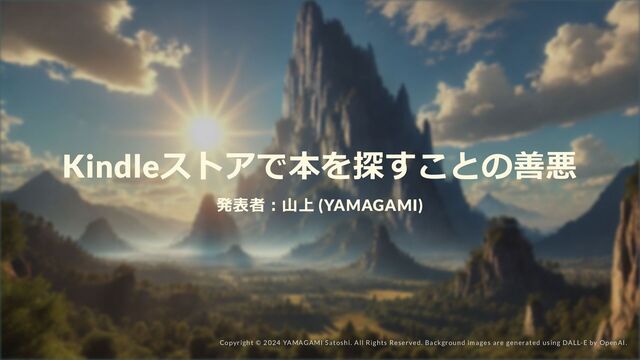 Kindleストアで本を探すことの善悪 発表者:山上 (YAMAGAMI) Copyright © 2024 YAMAGAMI Satoshi. All Rights