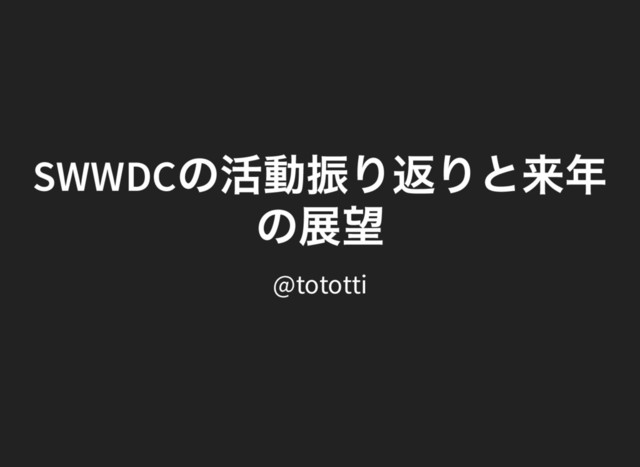 SWWDC の活動振り返りと来年 SWWDC の活動振り返りと来年 の展望 の展望 @tototti