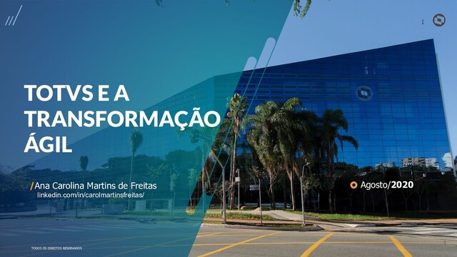 são nosso DNA. • O sucesso do cliente é o nosso sucesso. • Valorizamos gente boa que é boa gente. OBRIGADO ANA CAROLINA MARTINS DE FREITAS Agile Coach [email protected] linkedin.com/in/carolmartinsfreitas/ #SOMOSTOTVERS