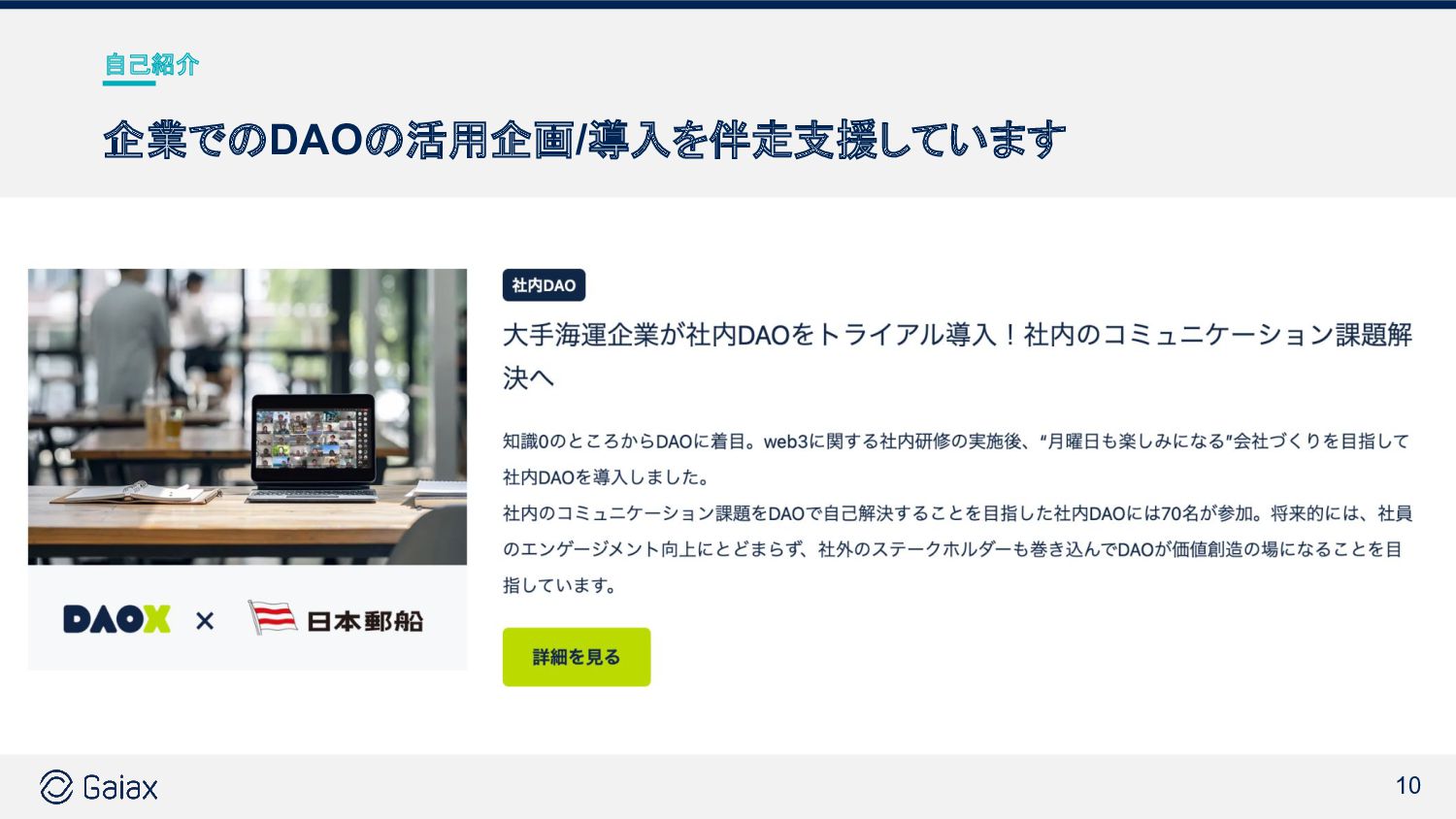 10 自己紹介 企業でのDAOの活用企画/導入を伴走支援しています