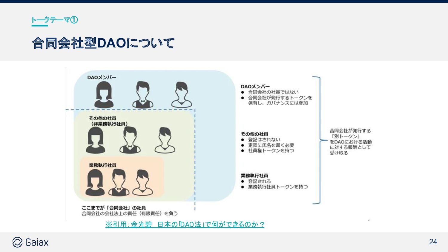 24 トークテーマ① 合同会社型DAOについて ※引用:金光碧 日本の「 DAO法」で何ができるのか?