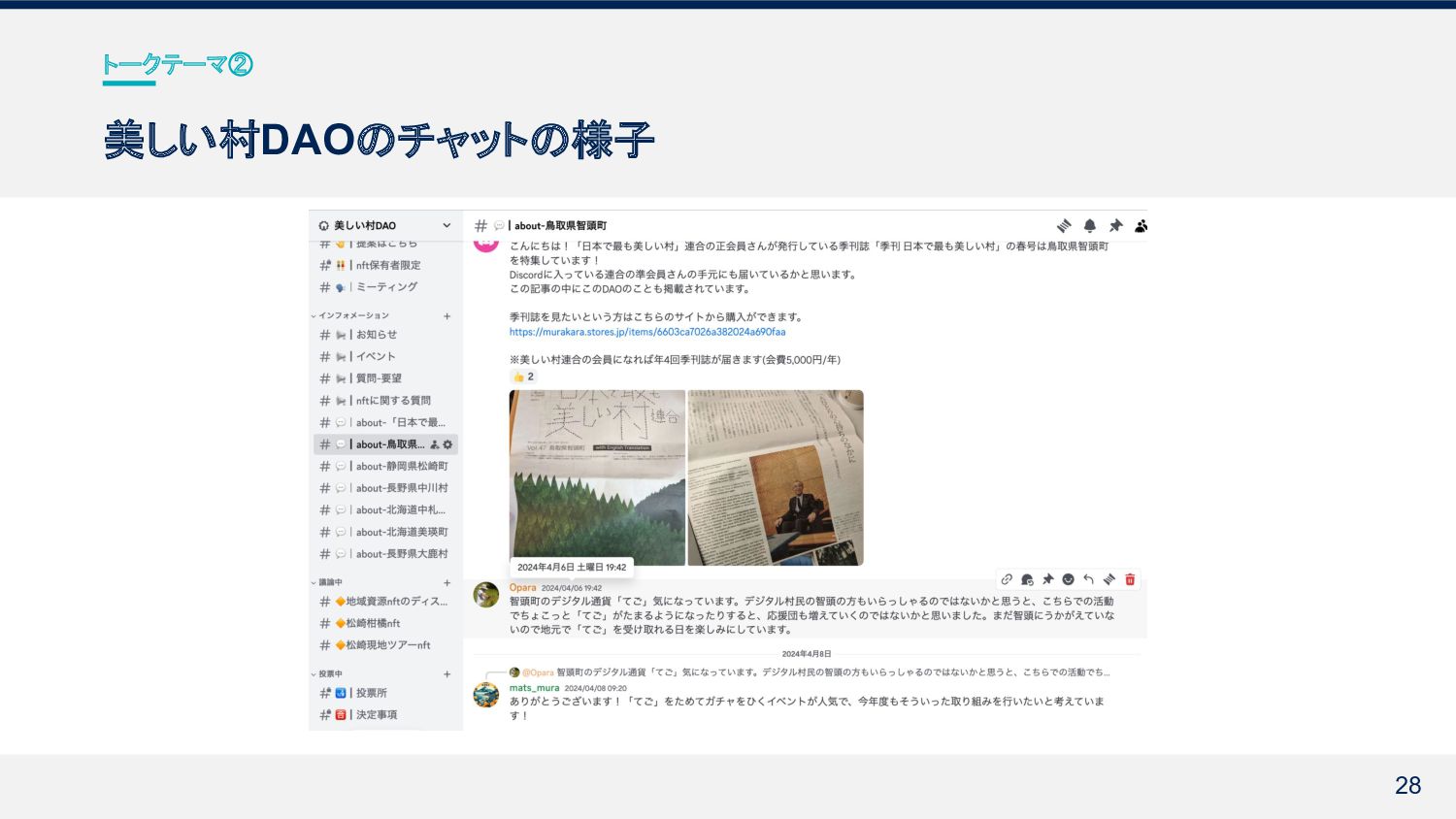 28 トークテーマ② 美しい村DAOのチャットの様子