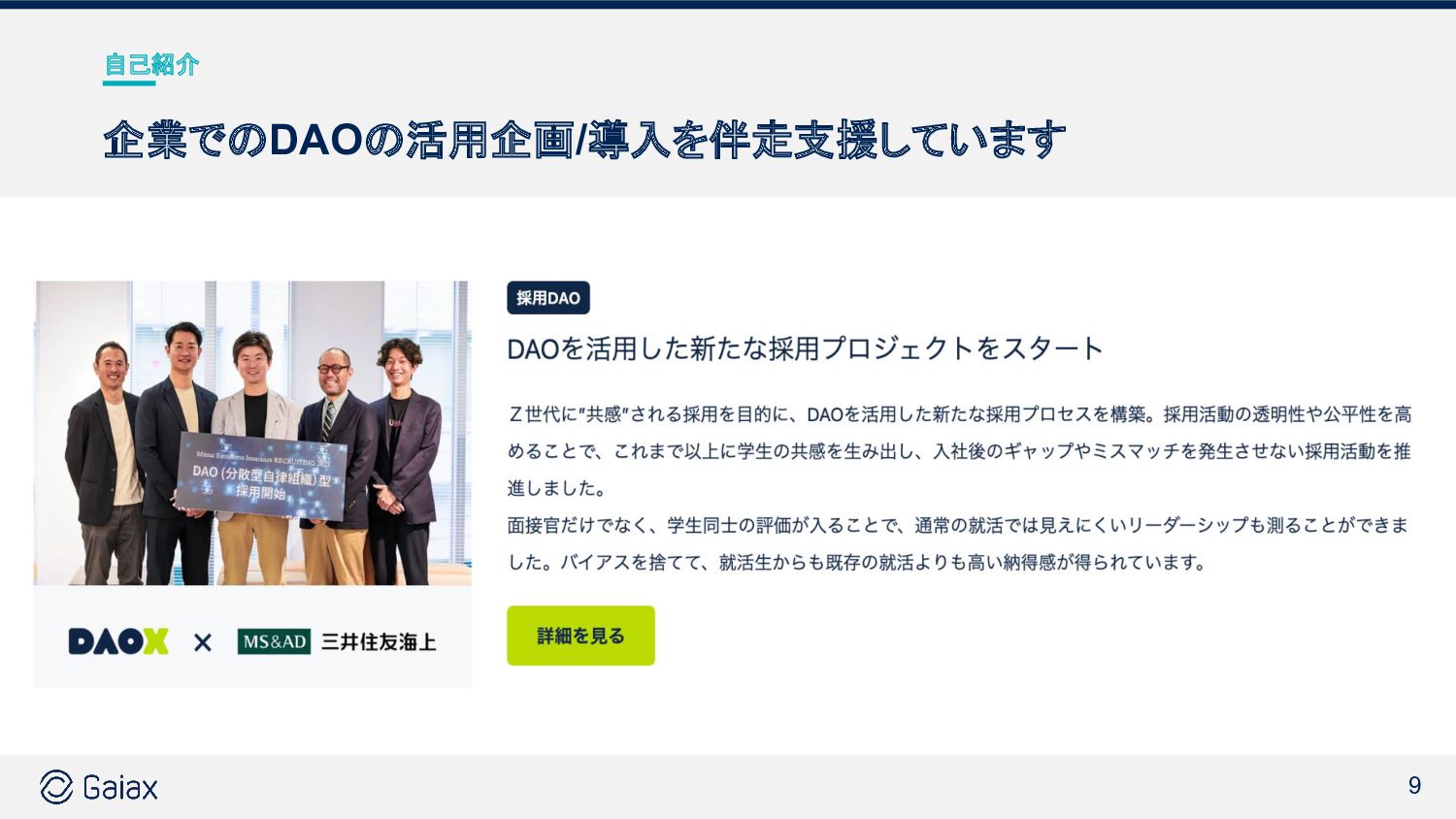 9 自己紹介 企業でのDAOの活用企画/導入を伴走支援しています