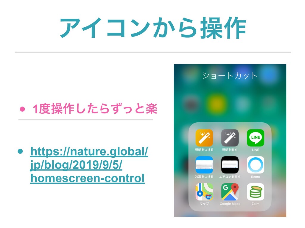 LEAP DAY ΞΠίϯ͔Βૢ࡞ • 1ૢ࡞ͨ͠Βͣͬͱָ • https://nature.global/ jp/blog/2019/9/5/ homescreen-control