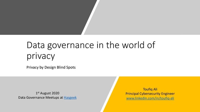 In this presentation I talk about a problem statement and discuss how a data governance framework can deal with all kinds of unstructured data and agile processes that allow implementing privacy controls grounds up or implementing privacy controls in the existing system.