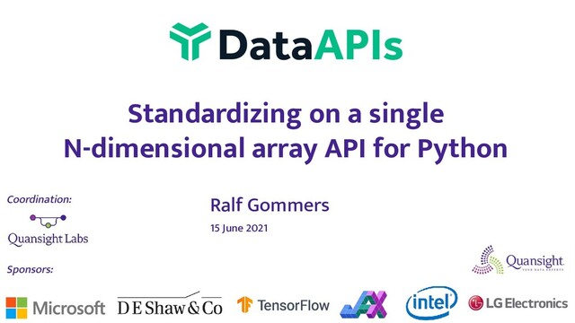 Numerical computing and deep learning libraries for Python all offer array (or tensor) data structures and associated compute functionality with similar APIs. There are many subtle differences however, making it hard for users to migrate from one library to another, or for library authors to write code that supports multiple array libraries. The Consortium for Python Data API Standards (https://data-apis.org/) recently released a first version of its array API standard - which aims to address these issues - for community review.