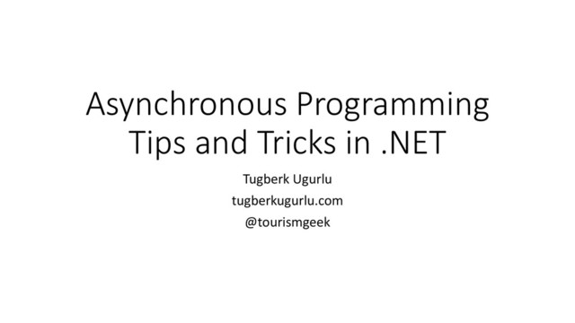 • Async best practices: http://bit.ly/1DsFuMi • Async Performance: http://bit.ly/1EqWYdy • My Async Blog Posts: http://tugberkugurlu.com/tags/async • The zen of async: http://bit.ly/1NyIdvb
