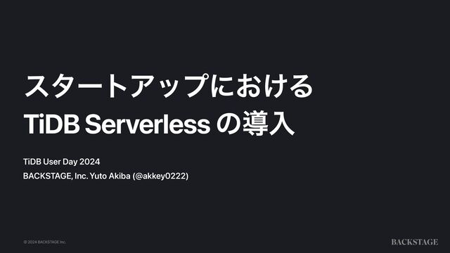 BACKSTAGE, Inc. Yuto Akiba (@akkey0222) ελʔτΞοϓʹ͓͚Δ TiDB Serverless ͷಋೖ TiDB