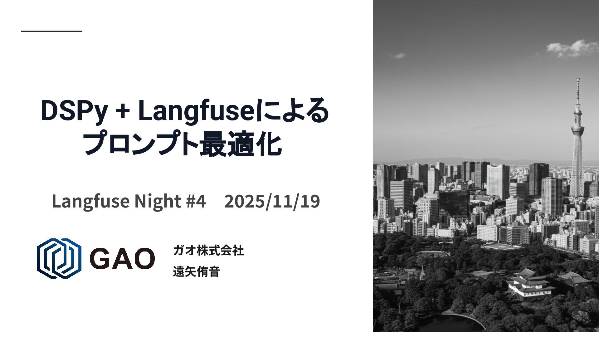 ガオ株式会社 遠⽮侑⾳ Langfuse Night #4 2025/11/19 DSPy + Langfuseによる プロンプト最適化