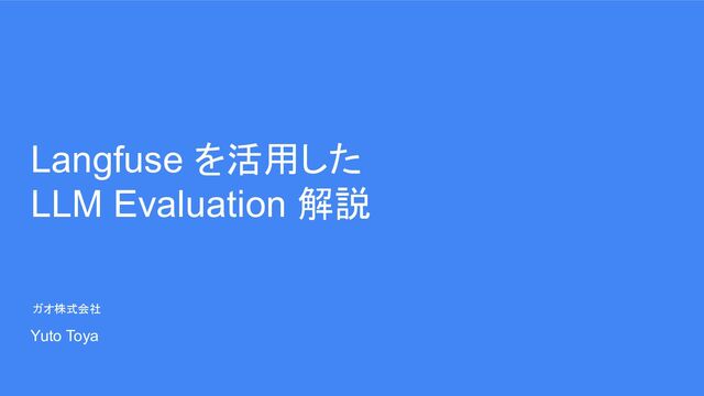 Langfuse を活用した LLM Evaluation 解説 Yuto Toya ガオ株式会社