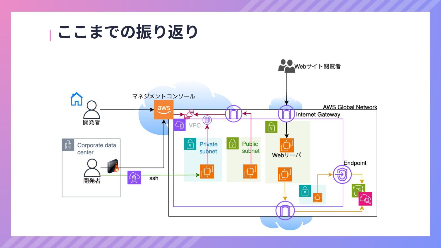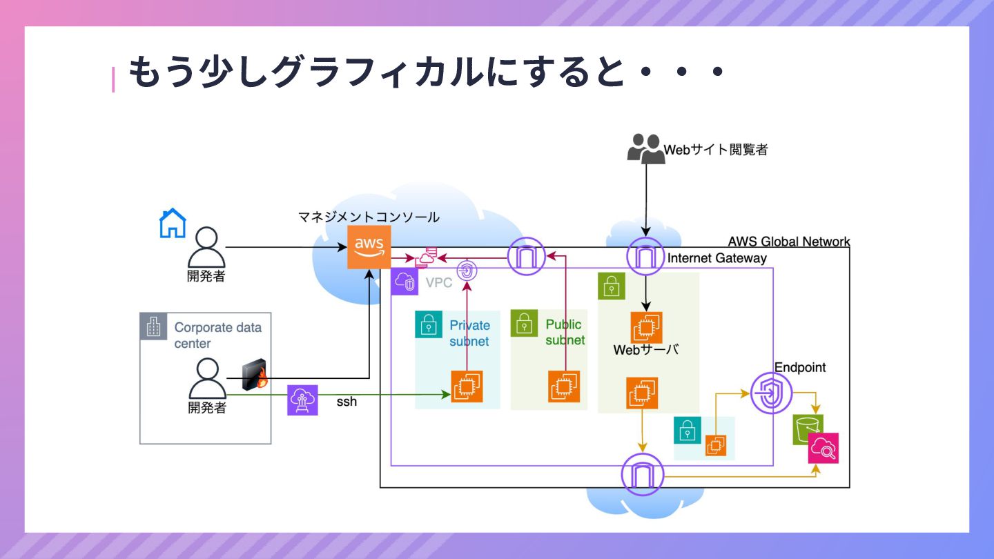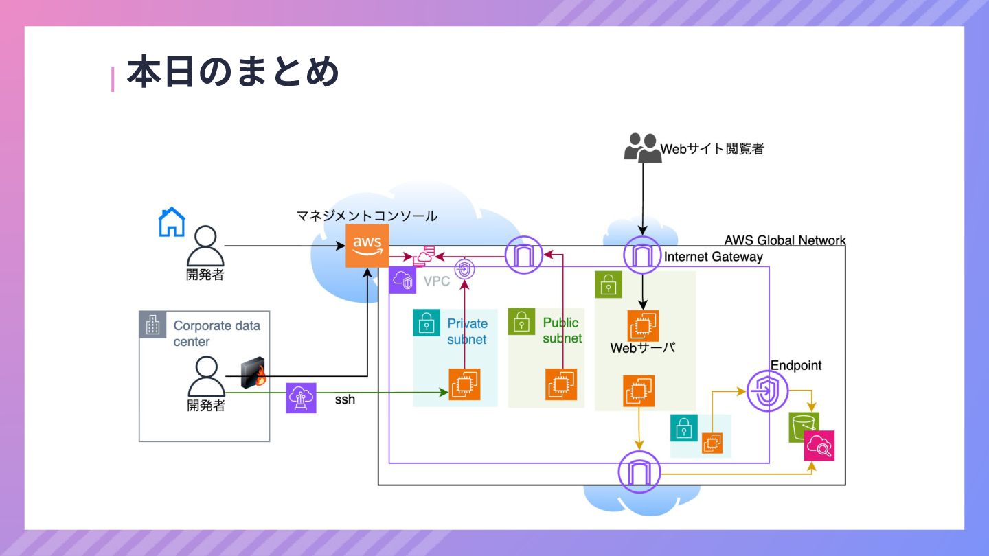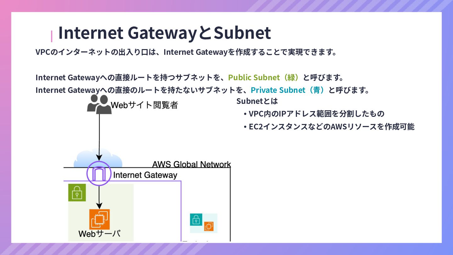 ‧構成をコード化 ‧実⾏に必要な ファイルが固められた パッケージ ‧イメージを保存 ‧コンテナ実⾏ ‧パッケージ⽣成 を実⾏(後述) Docker Engin エディタ等で作成 Docker Engin, Docker compose (in Docker Desktop) Docker Hub, Amazon ECR Icons from Flaticon: • document - Freepik • build - juicy_fish • docker - Hopstarter • shipping - Afian Rochmah Afif • automation - Iconjam