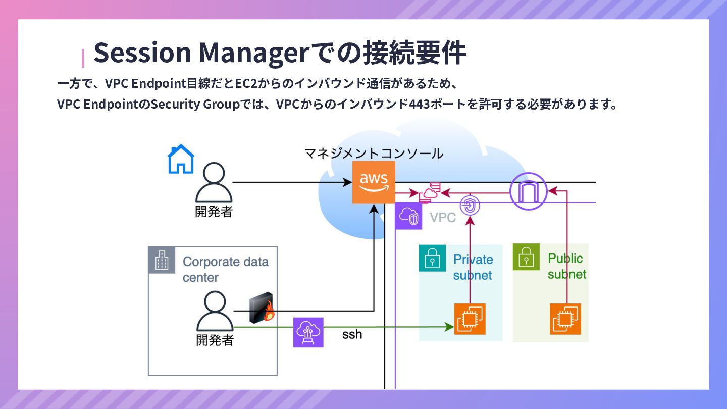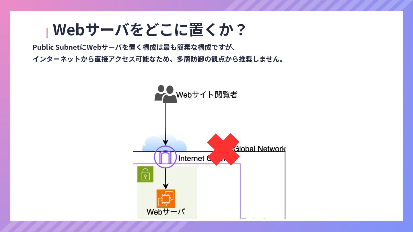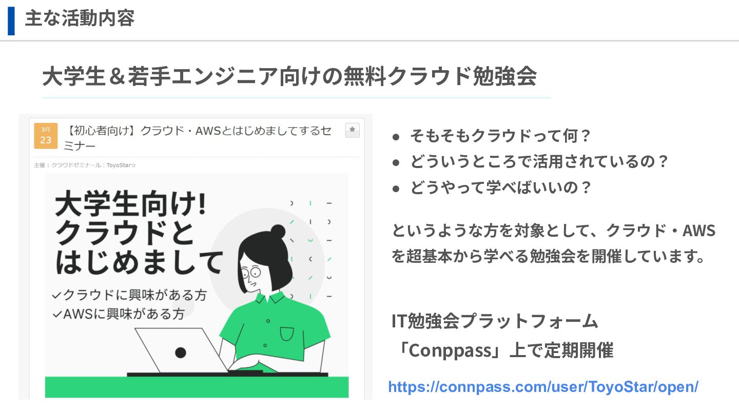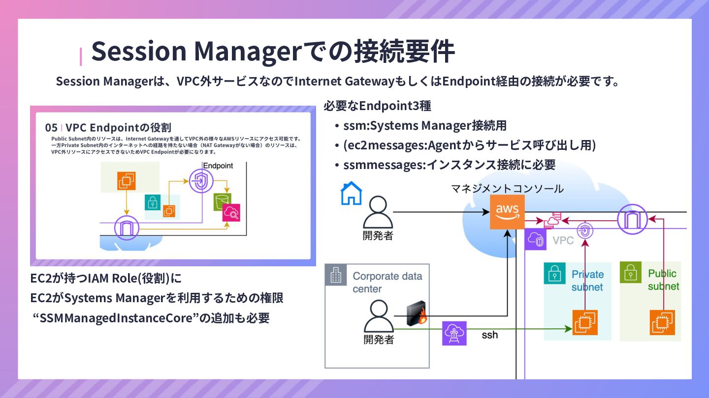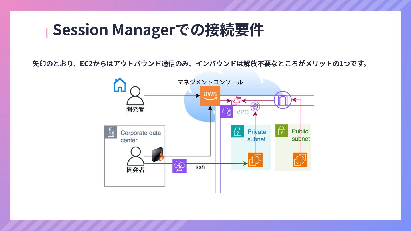 ‧構成をコード化 ‧実⾏に必要な ファイルが固められた パッケージ ‧イメージを保存 ‧コンテナ実⾏ ‧パッケージ⽣成 を実⾏(後述) Docker Engin エディタ等で作成 Docker Engin, Docker compose (in Docker Desktop) Docker Hub, Amazon ECR Icons from Flaticon: • document - Freepik • build - juicy_fish • docker - Hopstarter • shipping - Afian Rochmah Afif • automation - Iconjam