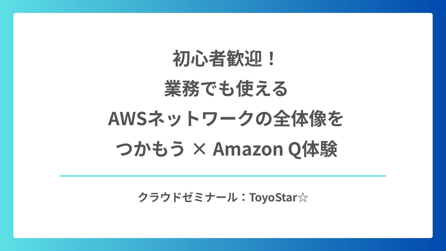 初⼼者歓迎! 業務でも使える AWSネットワークの全体像を つかもう × Amazon Q体験 クラウドゼミナール:ToyoStar☆