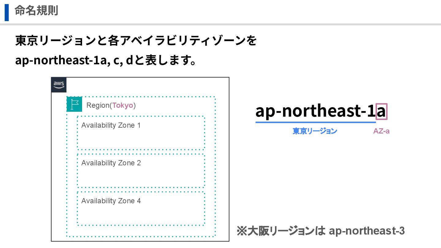 Zone 2 Availability Zone 4 ap-northeast-1a 東京リージョン AZ-a ※大阪リージョンは ap-northeast-3