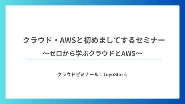 クラウド‧AWSと初めましてするセミナー クラウドゼミナール:ToyoStar☆ 〜ゼロから学ぶクラウドとAWS〜