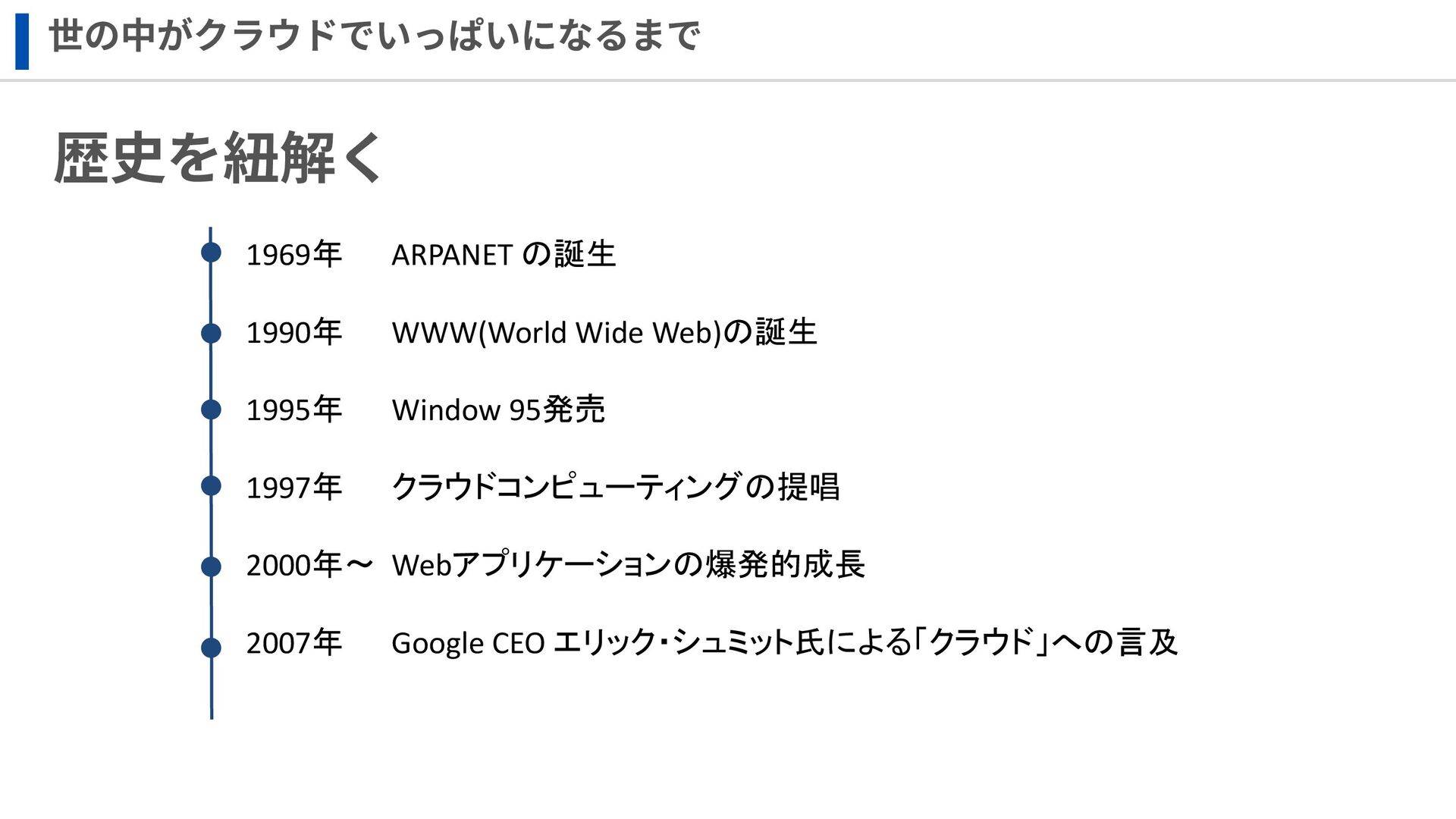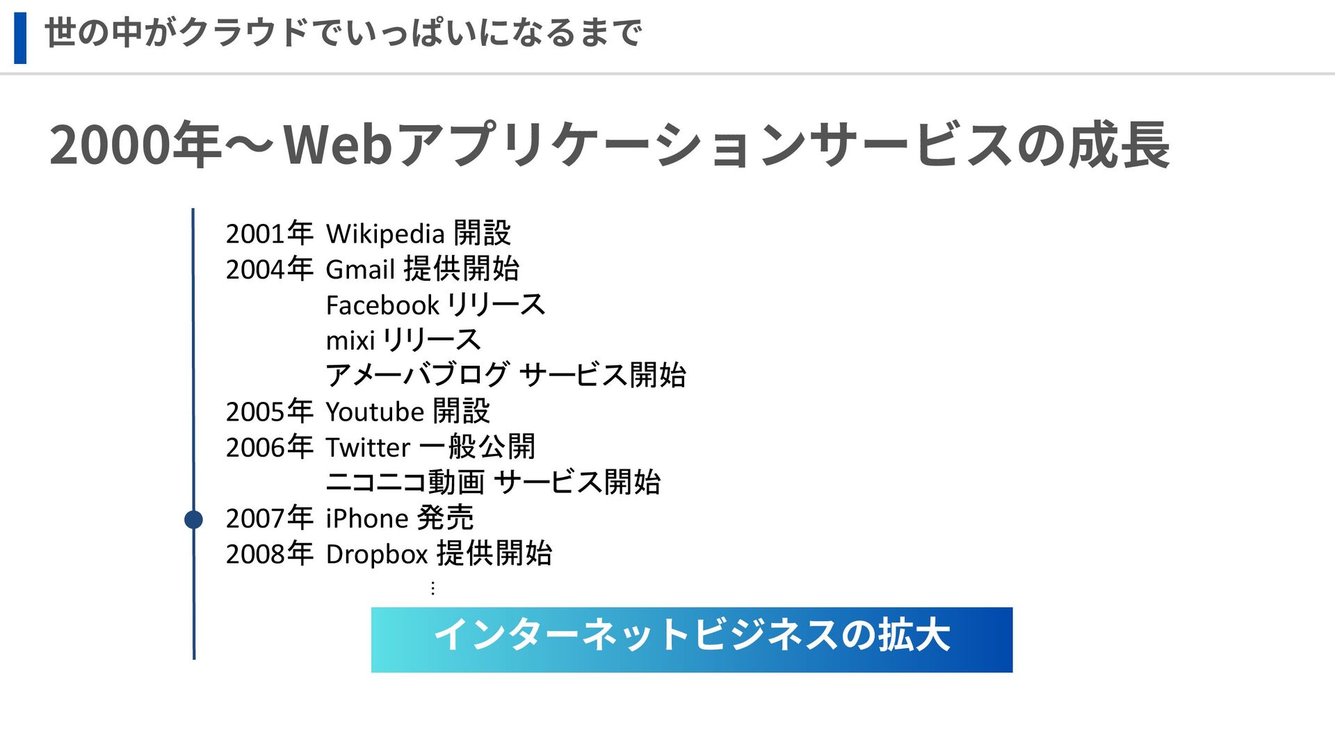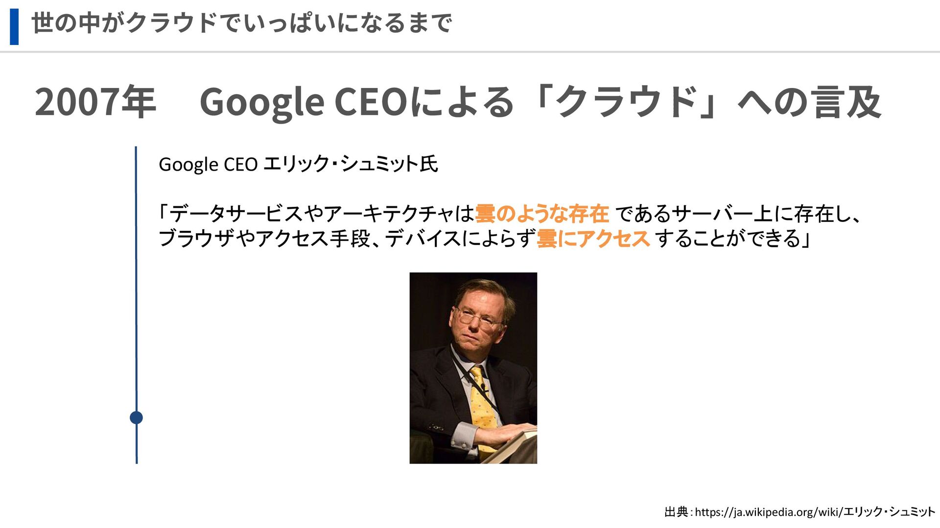 2006年 Google CEO エリック・シュミット氏による「クラウド」への言及 2006年 AWSの誕生 by Amazon Web Services,