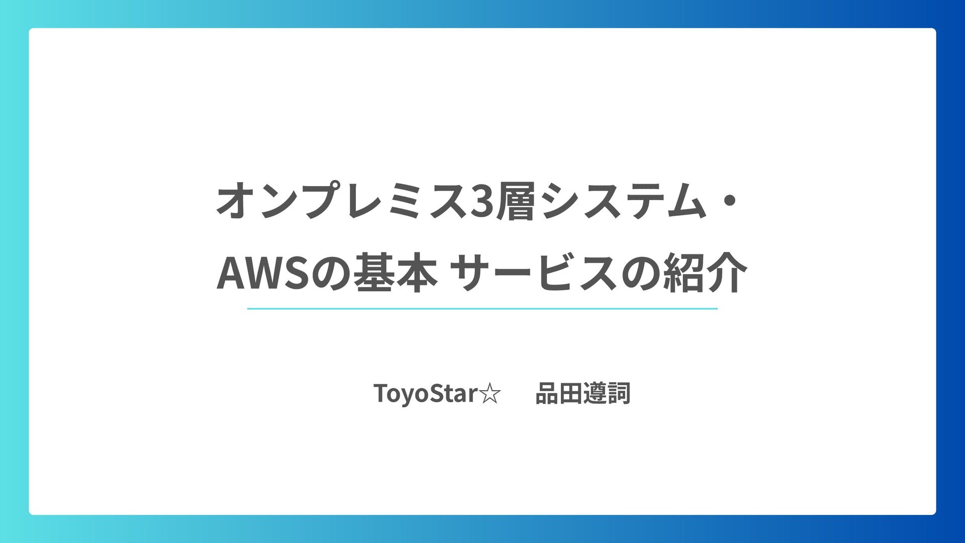 オンプレミス3層システム‧ AWSの基本 サービスの紹介 ToyoStar☆ 品⽥遵詞
