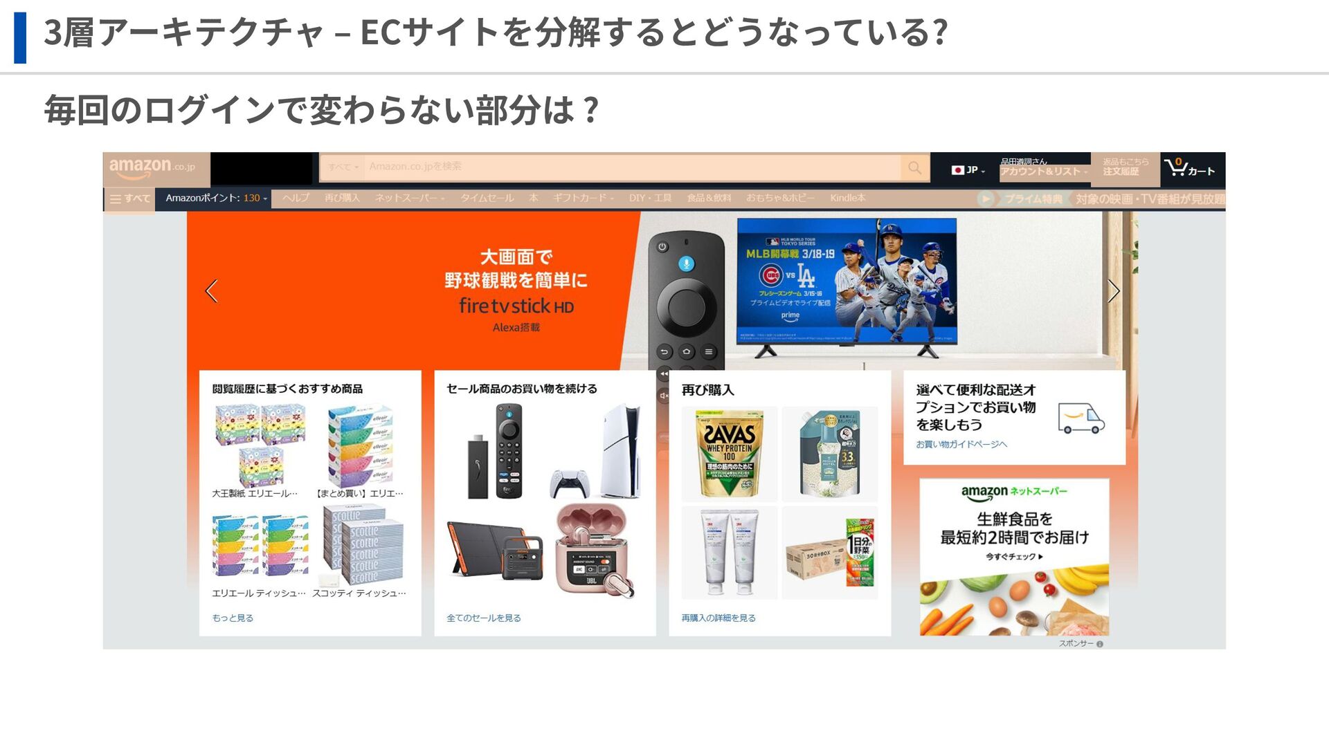 3層アーキテクチャ ‒ ECサイトを分解するとどうなっている? 毎回のログインで変わらない部分は ?