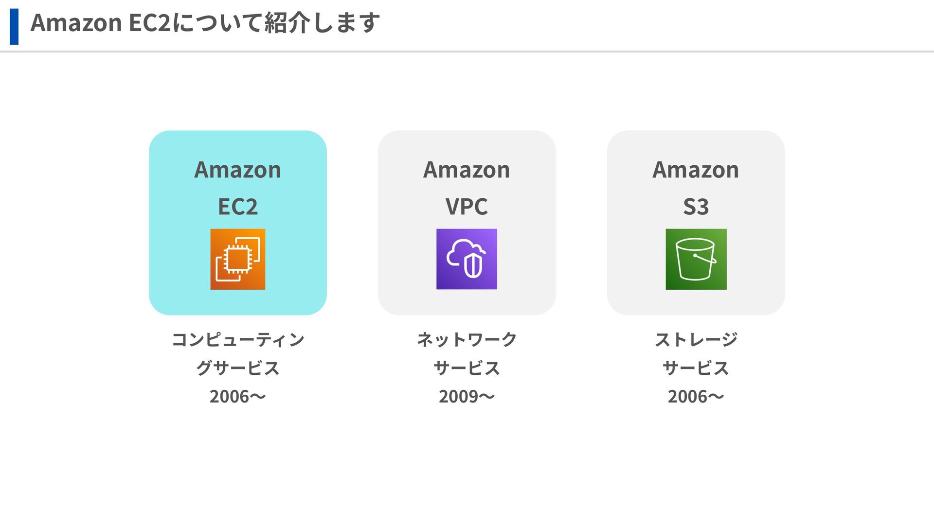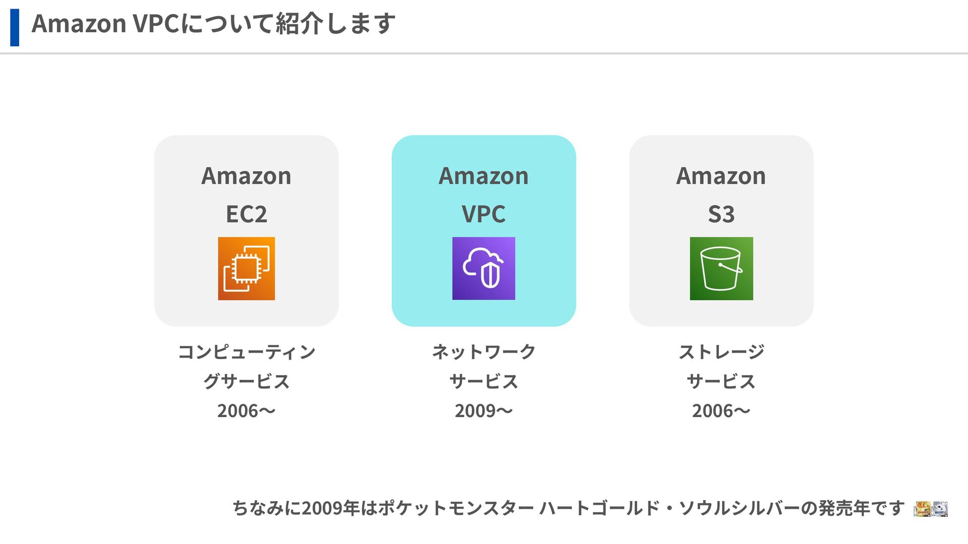 Amazon EC2 Amazon VPC ネットワーク サービス 2009〜 Amazon S3について紹介します コンピューティン
