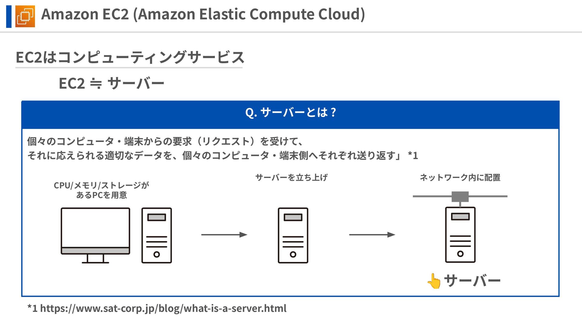 Amazon EC2 (Amazon Elastic Compute Cloud) EC2はコンピューティングサービス EC2 ≒ サーバー